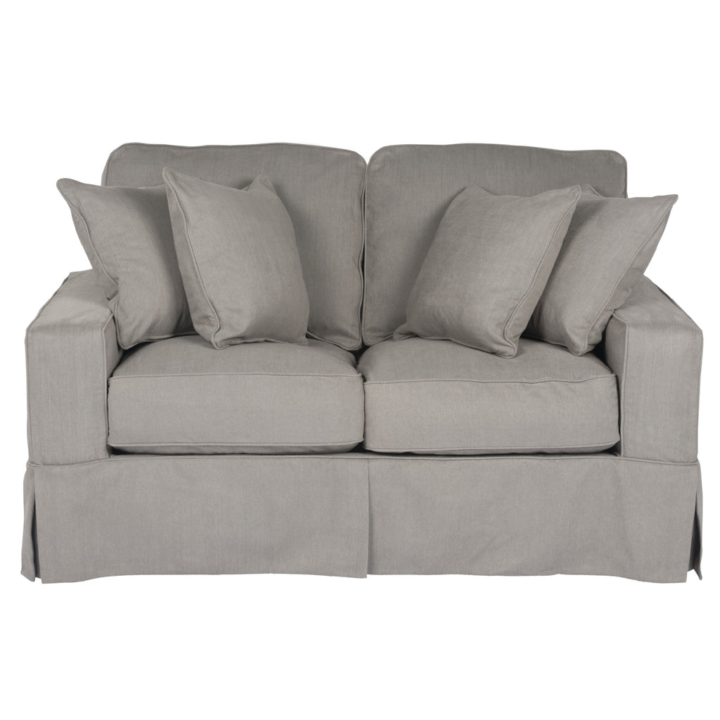 Sunset Trading Americana Box Cushion Slipcovered Loveseat | Stain Resistant Performance Fabric | Gray