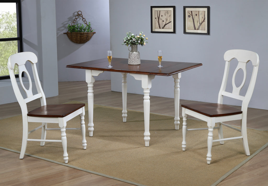 Add Traditional Country Cottage Charm To Your Home Without Compromising Space Or Style. Two Colors Are Better Than One, Chestnut Brown Wood With White Is A Clean And Refreshing Combo That Modernizes The Classic Farmhouse Style Of This Table And Chair Set. Perfect For Small Dining Area, Condo, Apartment Or Downsized Senior Home Living, This Double Drop Leaf Table Serves Your Day-To-Day Needs Yet Transforms Into Extra Dining Space When Guests Drop By. Mix And Match With Your Choice Of Sunset Trading Andrews Collection Arm And Side Chairs, Buffet, China Cabinet, Islands And Carts (Sold Separately) To Complete Your Perfect Dining Retreat. The Superior Solid Wood Craftsmanship Is Designed To Last For Generations!