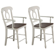 Sunset Trading Andrews Napoleon Barstool With Arms | Antique White With Chestnut Brown Seat | Counter Height Stool| Set Of 2