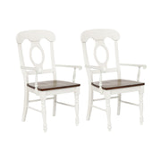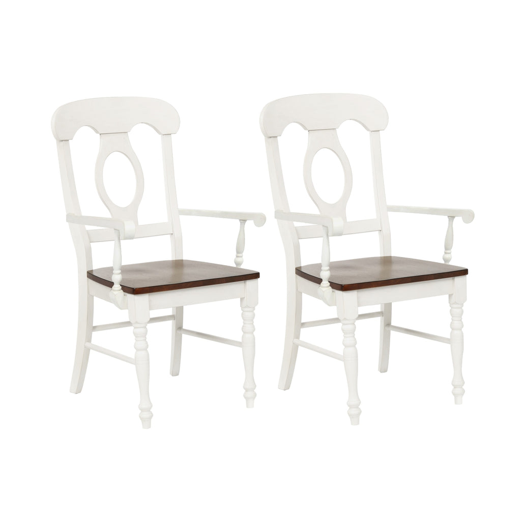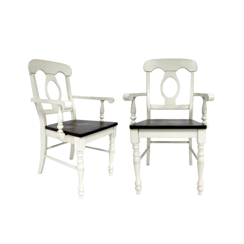 Sunset Trading Andrews Napoleon Dining Chair With Arms | Antique White With Chestnut Brown Seat | Set Of 2