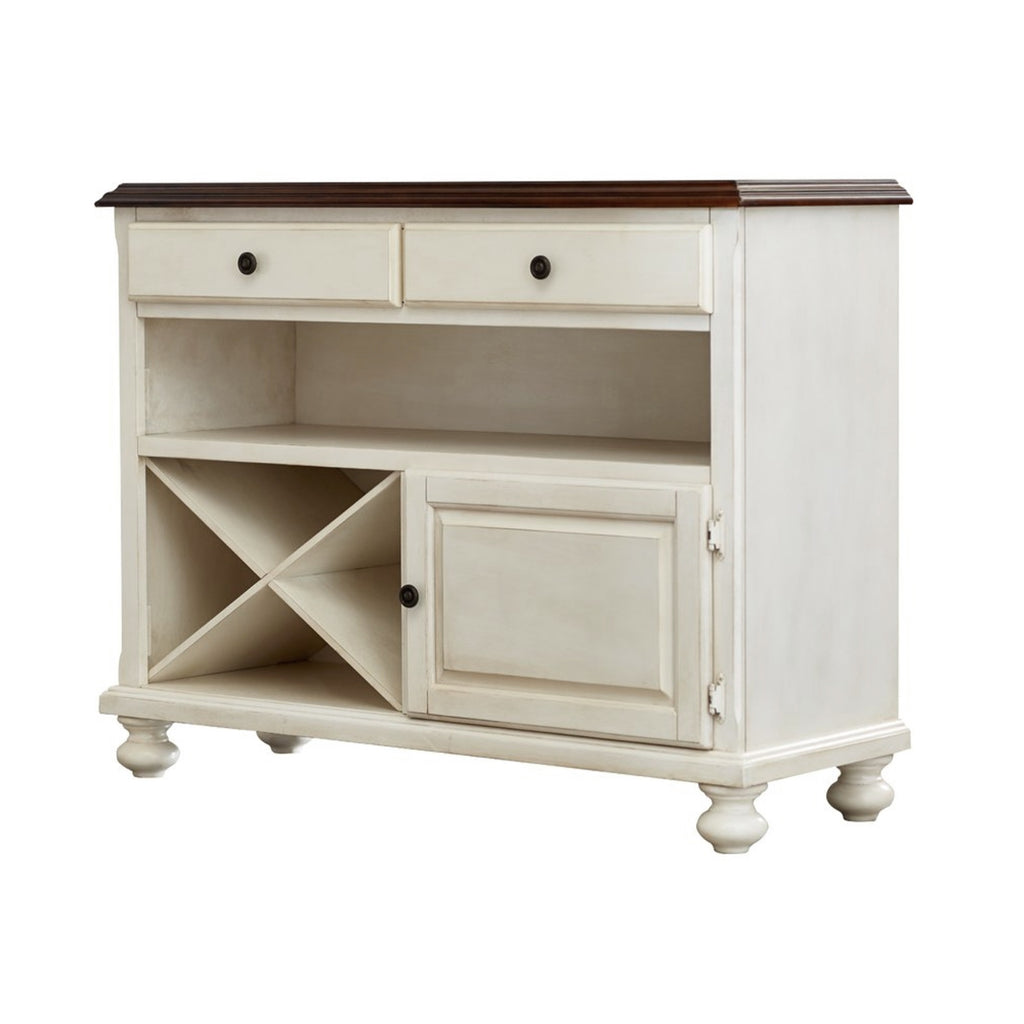 Invite An International Touch Of French Country, British Caribbean And Traditional American Farmhouse Styles Into Your Home With This Versatile Dining Server From The Sunset Trading - Andrews Dining Collection. Welcome Guests Into Your Home With The Warmth And Comfort Of This Classic Timeless Piece. Its Versatile Style Will Complement Just About Any Decor In Your Home For Years To Come. Warm And Inviting With A Touch Of Casual Elegance, The Classic Beauty And Craftsmanship Of This Dining Server Makes It Equally Appropriate For Your Kitchen, Office, Dining Or Game Room. The Andrews Dining Collection Is Available In Antique White Or Chestnut Finish With Two Table Styles And Three Dining Chair Styles.