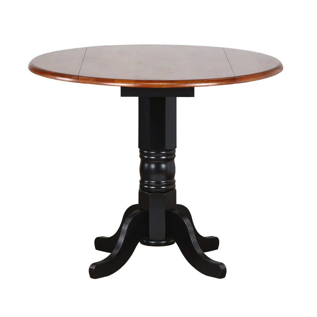 Sunset Trading Black Cherry Selections 3 Piece 42 Round Extendable Drop Leaf Pub Table Set With 2 Napoleon Stools| Counter Hei