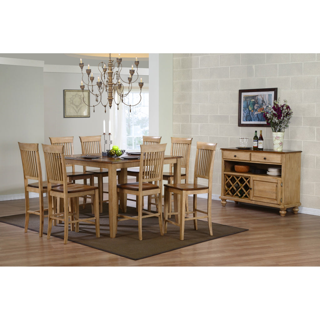 These barstools have a distressed two-tone finish in light creamy wheat with warm pecan brown highlights.