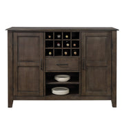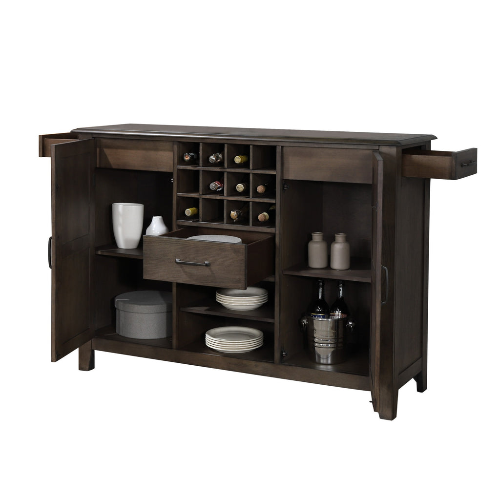 If You Have Wine To Pour And Things To Store, Order This Cabinet To Update Your Decor. For Decades, We Have Provided High Quality Furniture, Knowing Good Design Requires Paying Attention To Detail. Each Side Has A Handy, Hidden Drawer, Another In The Front And Shelves Galore. Open Display Shelves, Four Interior Storage Areas, And Twelve Perfectly Sized Bottle Holders For Wine Or Port, All Constructed From Solid Rubberwood For Unsurpassed Support. Clean Lines With Mission Style Doors Will Compliment Any Farmhouse, Urban Or Traditional Tone, Making This Buffet Server A Smart Addition To Your Home. Complete Your Dining Ensemble With Coordinating Sunset Trading Cali Dining Collection Pieces.