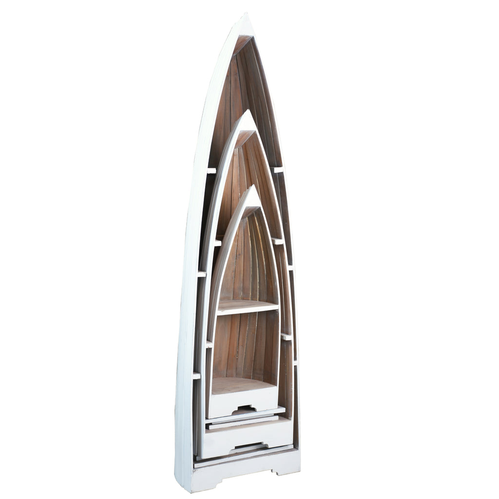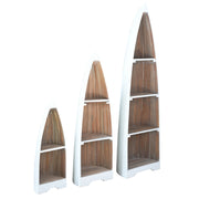 A Must-Have For Any Boating Enthusiast Sitting On The Dock Of The Bay. You Can Create The Vibe Of A Cape Cod Boathouse Anywhere In Your Home With This Three-Piece Solid Wood Boat Shelf Set. Super Cute And Versatile, You Can Almost Feel The Ocean Breeze And Hear The Rippling Waves While You Hang Out In Your Living Room, Surrounded By Your Favorite Maritime Memorabilia, Encased In These White And Driftwood Brown Cottage Chic Shelves. Mix It Up! Place One Shelf Behind Your Home Bar, The Other As A Unique End Table Next To Your Favorite Chair And The Big One For Toiletries, Towels, And Essential Oils In Your Bath. Bam! One Three-Piece Order Creates A Relaxing Nautical Theme Throughout Your Home!
