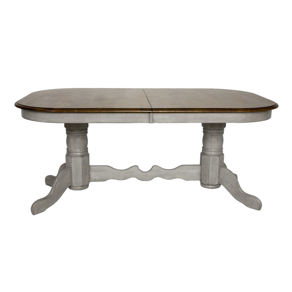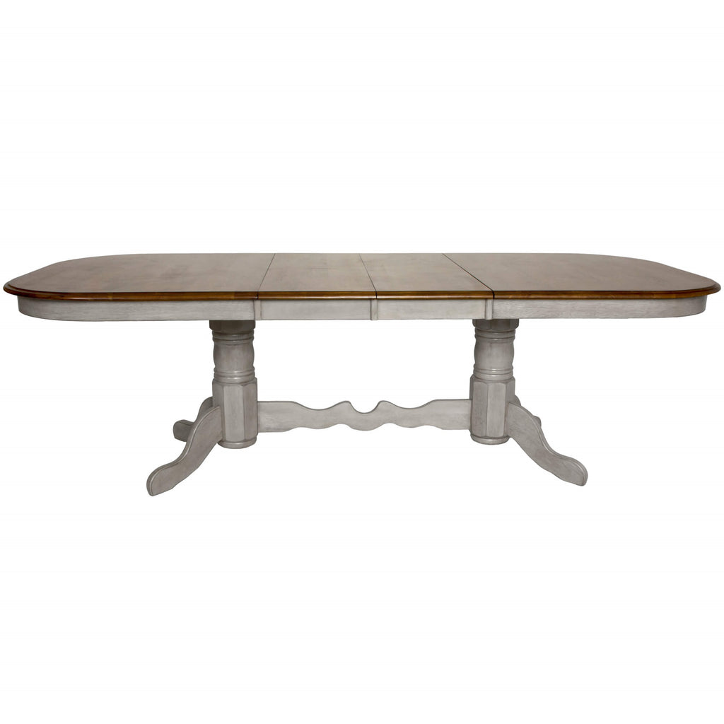 Sunset Trading Country Grove 96 Oval Double Pedestal Extendable Dining Table | Distressed Gray And Brown Wood | Seats 10
