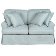 Sunset Trading Horizon T-Cushion Slipcovered Loveseat | Stain Resistant Performance Fabric | Ocean Blue