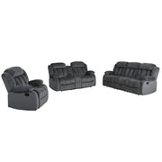The Sunset Trading Madison living room set is made with durable micro suede fabric, selected hardwood frames, and heavy-duty steel rail mechanisms for the reclining features.