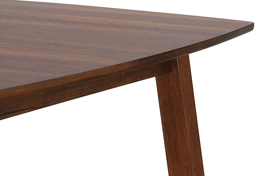 The dining table features adjustable levelers and non-marking nylon inserts to protect your wood and tile floors from scratches.