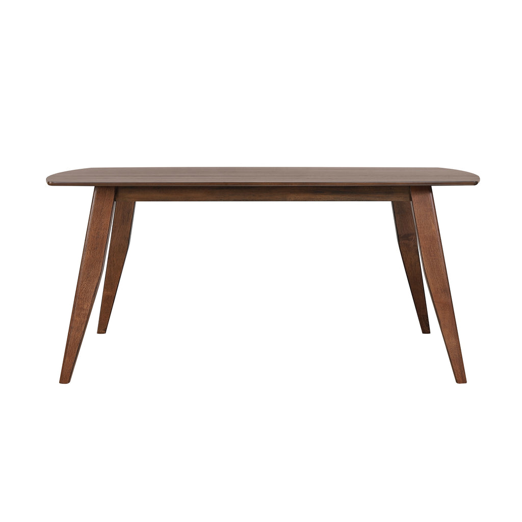 The Sunset Trading dining set features a minimalist, mid-century modern design, inspired by Scandinavian aesthetics with iconic splayed legs and curved backs.