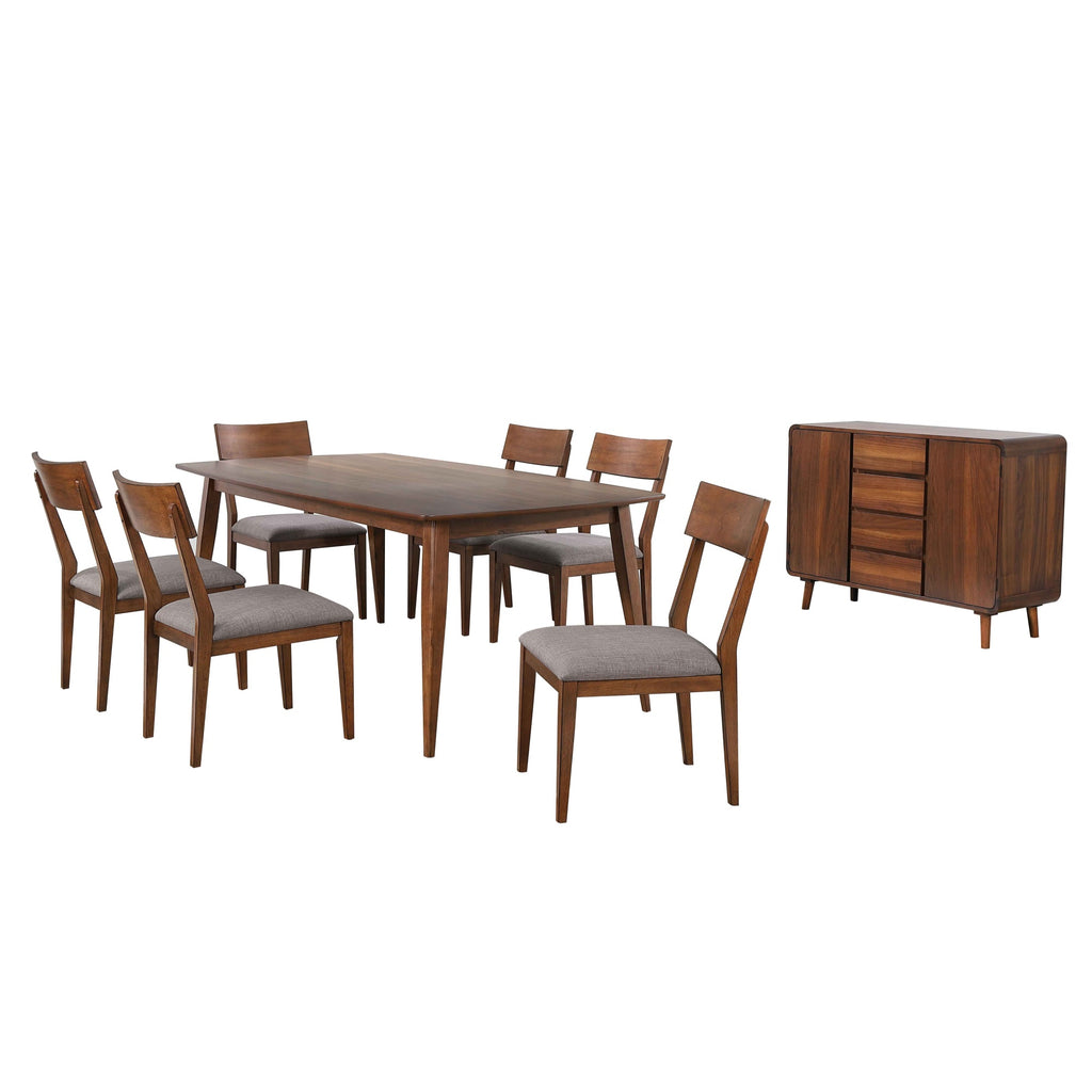 Sunset Trading Mid Century 8 Piece 78 Rectangular Dining Table Set | Padded Performance Fabric Seats | Server | Seats 6
