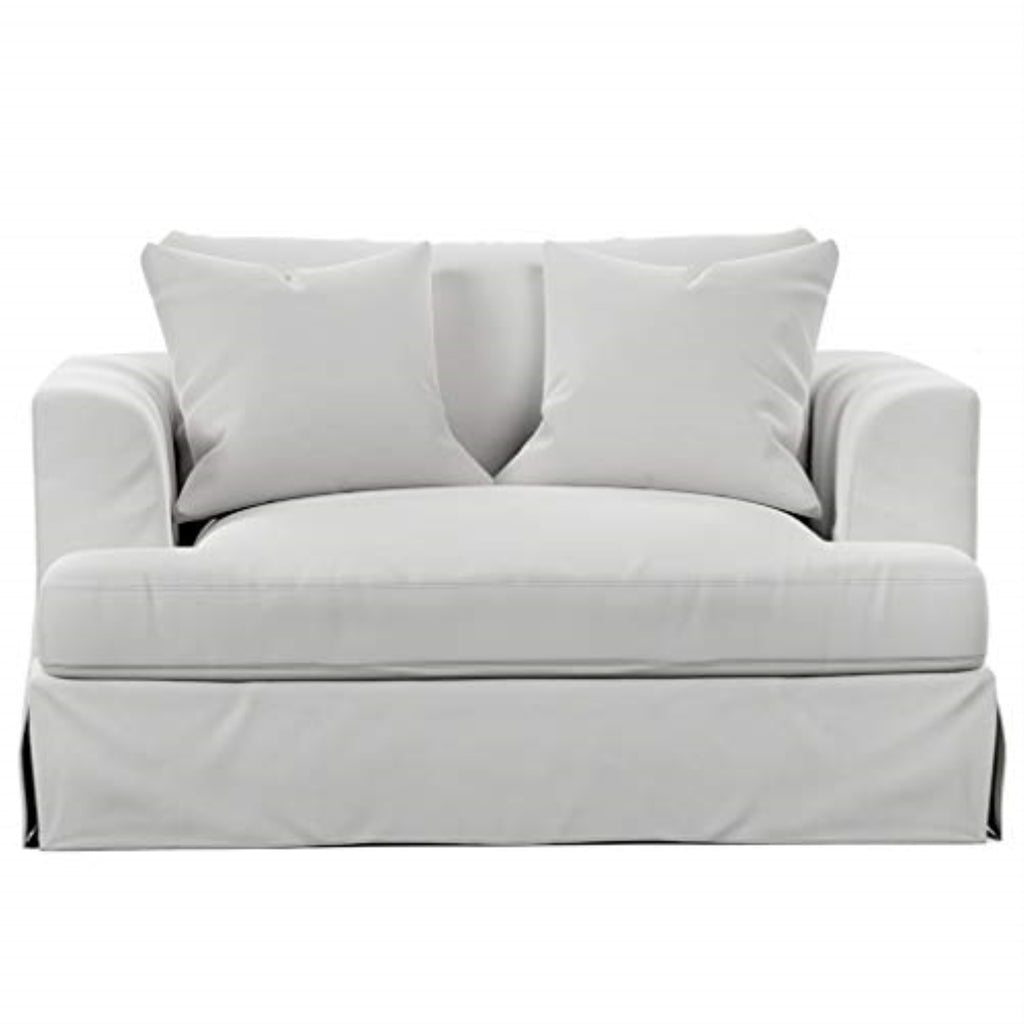 Sunset Trading Newport Slipcovered 52 Wide Chair And A Half | Stain Resistant Performance Fabric | 2 Throw Pillows | White