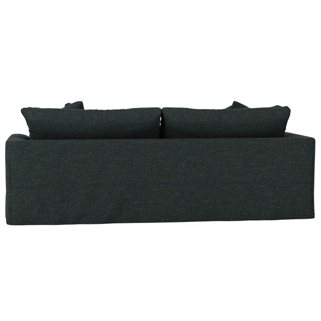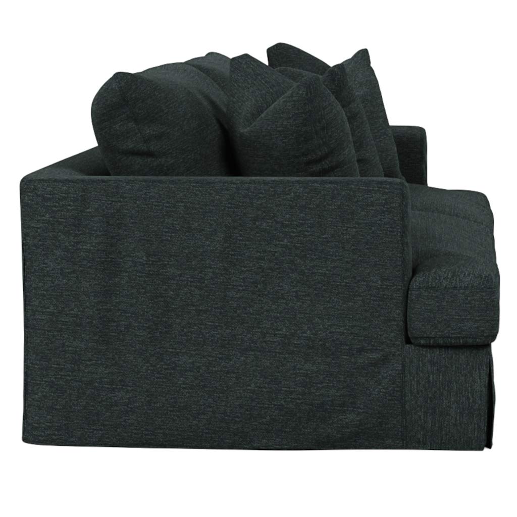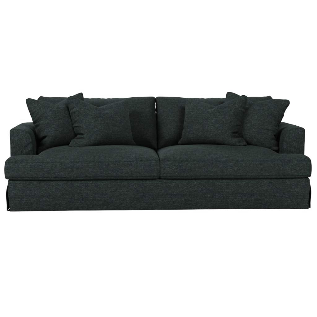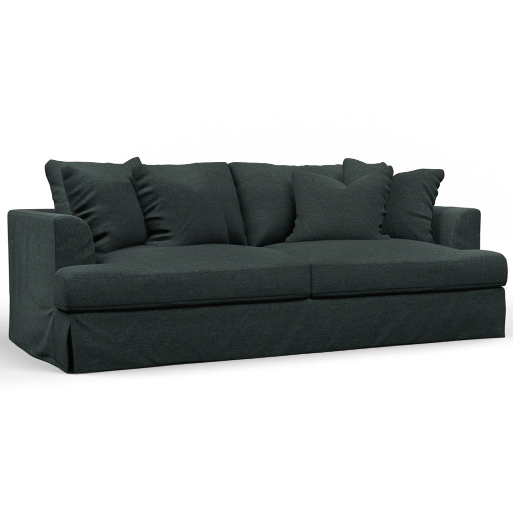Sunset Trading Newport Slipcovered Recessed Fin Arm 94 Sofa | Stain Resistant Performance Fabric | 4 Throw Pillows | Dark Gray