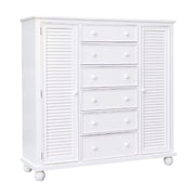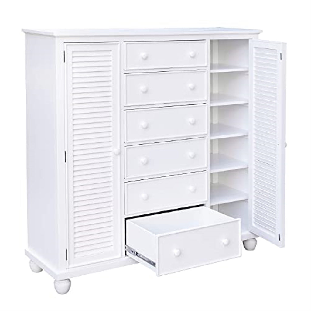 Quality Is In The Detail And Just A Click Away To Bring Luxury Resort Beach House Style Home And Enjoy Every Day. Fresh Crisp Contemporary White Invigorates Your Mornings And At Night, Soft Subtle Lighting Will Enhance The Splendor Of This Transitional Gentlemans Chest To Accessorize Your Master Bathroom Or Bedroom, Turn Your Flex Room Into A Bonus Guest Bedroom Or Storage For Your Home School Room. This Oversized Bedroom Chest With Universal Appeal Will Lighten The Vibe In Any Room, Drawers Roll Out On Heavy Duty Metal Glides With Felt Lined Top Drawer For You Finer Possessions. Individual Fixed Open Shutters On The Cabinet Doors Add An Easy Breezy Touch And Reveal So Much Storage You Will Be Amazed. Sunset Trading White Shutter Wood Configurable Furniture Collection Offers Louvered Panel Beds, Chest Of Drawers, Double Dresser, Mirror, Tall Pantry Cabinet, Room Divider And Two Size Nightstands Available Separately To Make All Your Coastal Living Home Decorating Ideas Come To Life.
