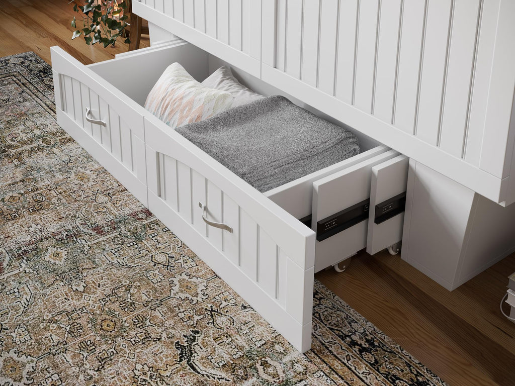 The Sydney Murphy Bed Chest features a convenient storage drawer that allows you to store extra pillows, blankets, and other essentials when the chest is not in use.