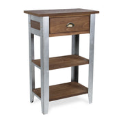 The table includes one top drawer and two shelves, offering ample storage space for items like books, decor, or everyday essentials.