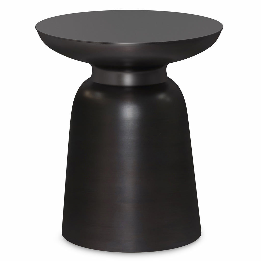 The dimensions of the SIMPLIHOME Toby Metal Accent Table are 16.5 inches in diameter and 18.1 inches in height.