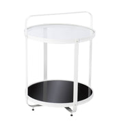 Round Out Your Design With This Glass-Top End Table. The Spacious Tabletop Offers A Clean Look, While The Lower Shelf Keeps Remotes And Electronics Within Easy Reach. A White Metal Frame Surrounds The Clear Glass Tabletop And Black Glass Shelf,Crafting A Modern, Two-Tone Design. Complement Your Contemporary Dcor When You Place This Round Side Table Alongside Your Sofa Or Between A Pair Of Modern Armchairs.