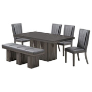 Voight 6 Piece Pedestal Dining Set, Gray Wood & Vinyl (Table, 4 Chairs, Bench)