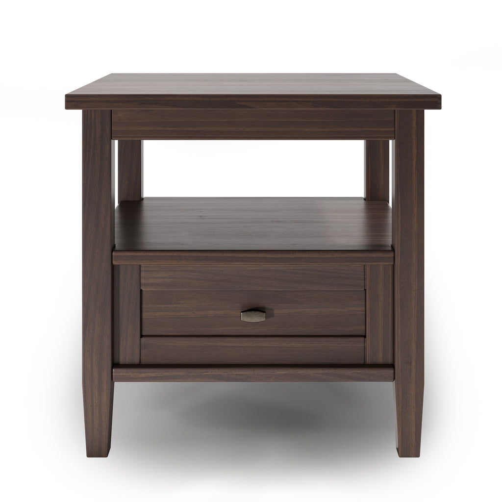 The Warm Shaker End Table is equipped with a rounded rectangular Brushed Nickel knob, adding a stylish touch to its overall design.