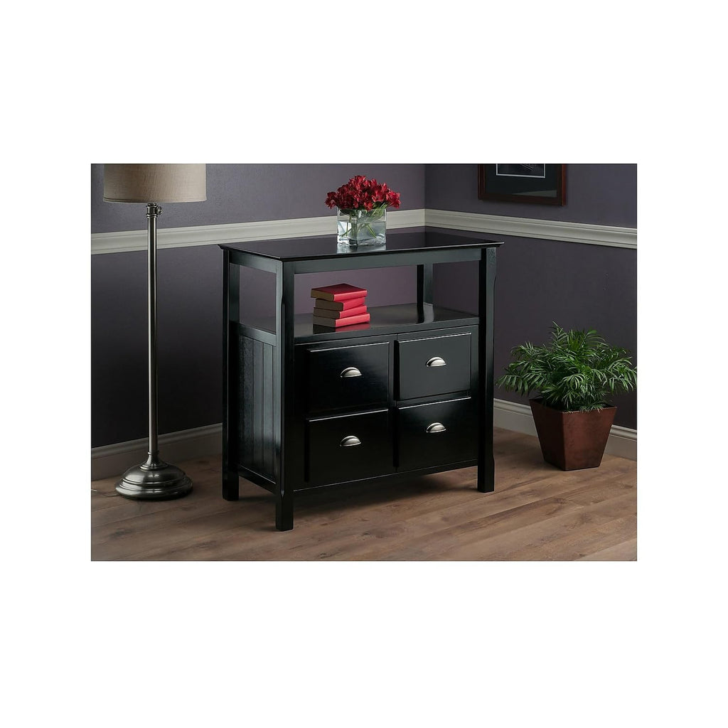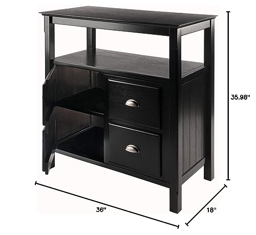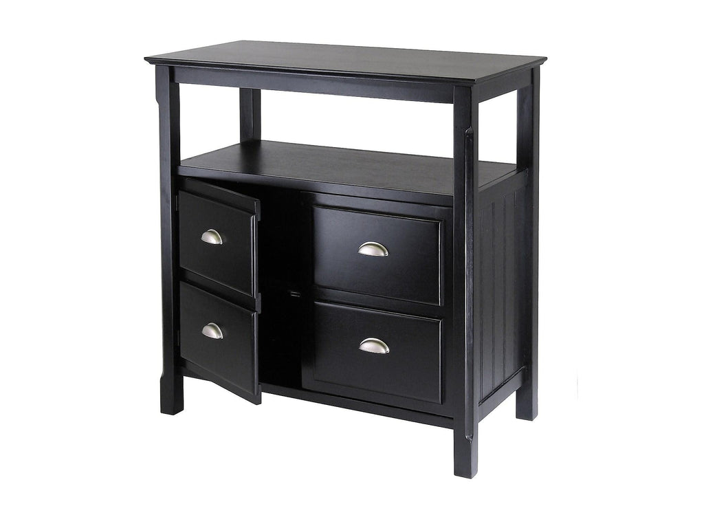 The Winsome Wood Timber Buffet Cabinet Is A Classic, Versatile Piece Of Furniture That Provides Accentual Contemporary Storage To Your Home Or Office With A Nice Clean Design Itas Simple Black Finish Makes It Easy To Compliment Almost Any Dacor All While The Brushed Aluminum Drawer Pull Offers A Striking Contrast Of Elegance The Headboard-Inspired Side Panels And Sculpted Square Legs Help Accentuate The Look Featuring An Open Shelf Compartment And Two Doors With A Shelf Within For Plenty Of Storage So, Whether Itas In Your Bedroom For Clothes And Towels, Or In Your Home Office For Binders And Books, Youall Have Ample Storage To Keep Organized Complete Your Living Area With The Additional Items From The Winsome Timber Collection For A Unified Space (Each Sold Separately) Conveniently Packed And Shipped In 1 Box, That Includes The Hardware Necessary For Assembling Replacement Part Request Can Be Submitted Directly To The Manufacturer Within 60 Days From Date Of Purchase Open Shelf: 308W X 162D X 82H Shelf Surface: 308W X 155D X 925H Assembly Required
