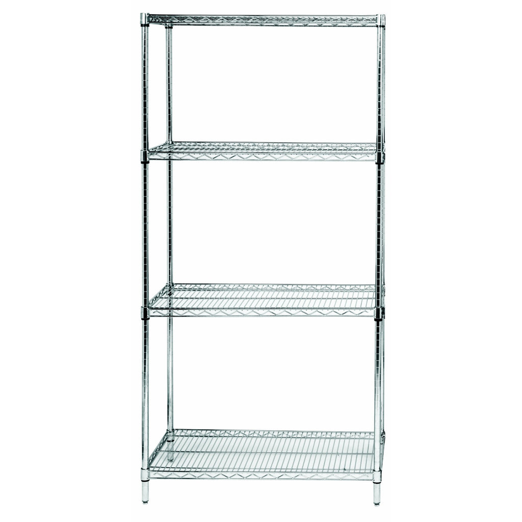 Genuine Quantum Modular Wire Systems Offer A Unique Combination Of Shelf And Post Sizes In A Variety Of Finishes To Compliment Any Application. The Split Sleeve And Grooved Numbered Posts Allow For Easy And Quick Assembly. The All Welded Shelf Construction Is Supported With Architectural Wire Trusses To Provide 600 Lbs Capacity Per Shelf. Heavy-Duty Shelving Unit Allows Up To 800 Lbs Shelf Capacity. Starter Kits Come Complete With 4 Posts And 4 Shelves. All Welded Construction With Additional Wire Trussing For High Strength Characteristics. Wire Allows Air To Circulate And Light To Penetrate For Increased Product Visibility. Minimal Dirt Accumulation. Measures 12 Width By 42 Length By 74 Height. Chrome Finish. Nsf Approved. 1 Year Warranty Agianst Defects.