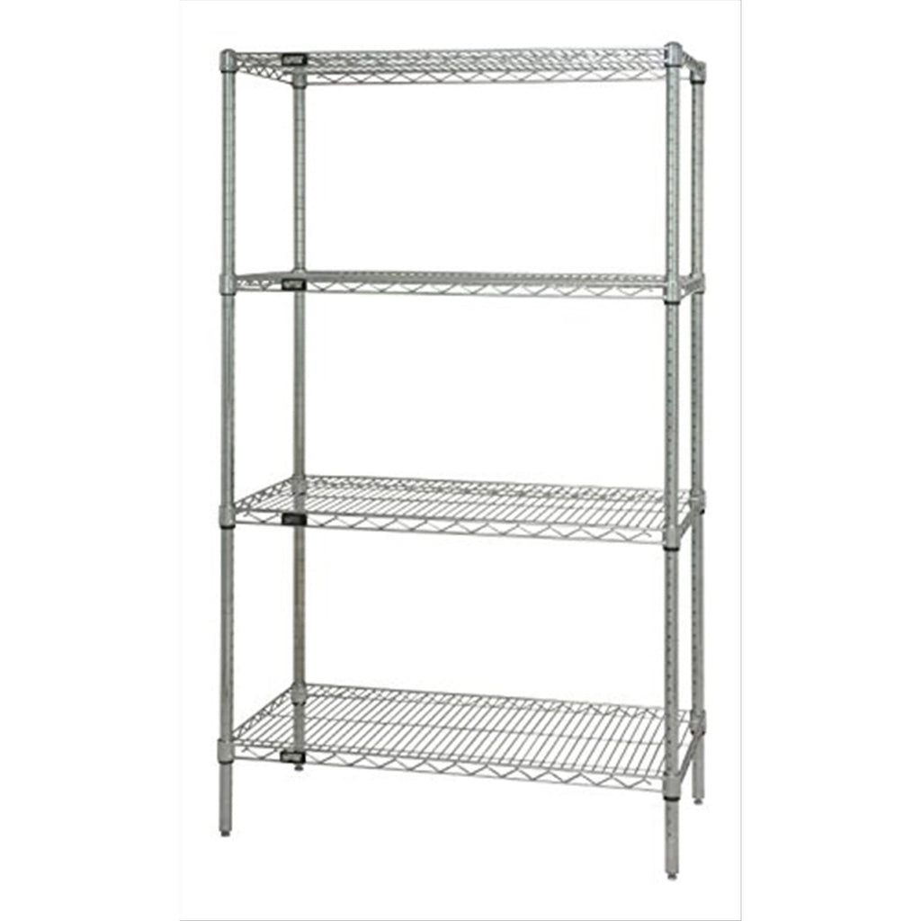 The Quantum Storage Systems Wr54-1848C Starter Kit Includes Four Wire Shelves, Four Posts, And Split Sleeves For The Assembly Of One Modular Four-Tier Wire Shelving Unit. Its Open Wire Design Offers Visibility Of Contents, Permits Air Circulation In The Work Environment, And Helps Resist Dust Build-Up. The Shelves And Posts Are Made Of Chrome-Finished Carbon Steel For Strength, Durability, And To Resist Dirt Buildup And Corrosion. The Wire Shelves Adjust In 1 Increments To Accommodate Items Of Varying Heights, And Have A Welded Construction Reinforced With Wire Trusses And Struts For Strength. The Posts Are Grooved At 1 Intervals To Help Guide Installation Of The Shelves At Desired Heights, And Come With Adjustable Levelers To Facilitate Use On Uneven Surfaces. Split Sleeves On The Posts Hold And Support The Shelves. This Starter Kit Has Been Manufactured To Meet National Sanitation Foundation/American National Standards Institute (Nsf/Ansi) Standard 2 For Use In Food Handling And Processing, Dry Storage Only.The Assembled Shelving Unit Measures 54 X 48 X 18 Inches (H X W X D). (H Is Height, The Vertical Distance From Lowest To Highest Point; W Is Width, The Horizontal Distance From Left To Right; D Is Depth, The Horizontal Distance From Front To Back.) It Has An 800 Lb. Per Shelf Capacity When The Weight Is Evenly Distributed Across The Shelf. Assembly Instructions Are Included, And No Tools Are Required.Quantum Storage Systems Manufactures Storage Bins And Systems, And Steel And Wire Shelving. The Company Is Headquartered In Miami, Fl. Whats In The Box? (4) Wire Shelf, Chrome Finish, 1 X 48 X 18 (H X W X D) (4) Post, Chrome Finish, 54 (H) (16) Split Sleeve