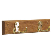 Wooden Mallet 2 Double Prong Hook Rail/Coat Rack, Brass Hooks, Light Oak