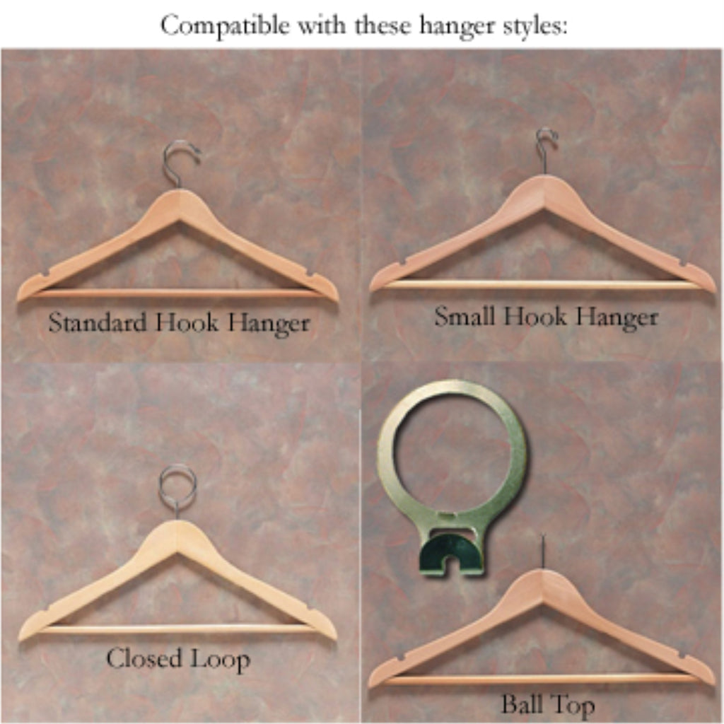 The rack can be equipped with either a 1-inch or 5/8-inch diameter chrome steel hanger bar.