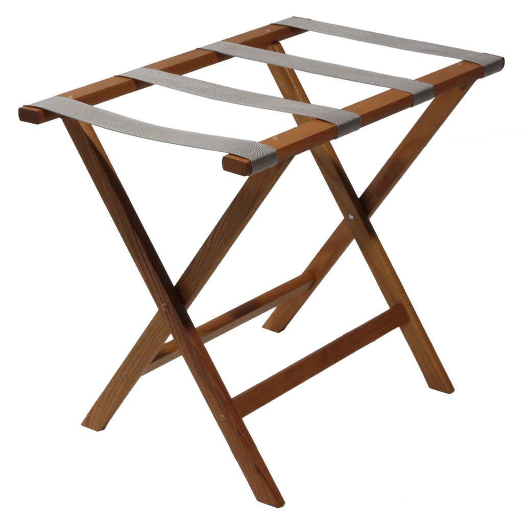 Wooden Mallet Deluxe Straight Leg Luggage Rack, Grey Straps, Medium Oak