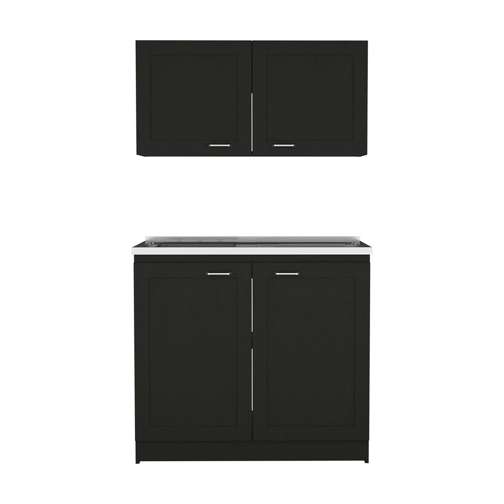 Every Ideal Kitchen Needs A Cabinet Set To Complement Itself Properly, And Here We Have The Ideal One For You.The Tuhome Zurich Cabinet Set Has Ample Storage And An Ideal Space To Accommodate Your Kitchen Essentials Perfectly.This Set Has Two Interior Shelves To Store Your Utensils In An Organized Way And Double Doors Cabinets For That Special Touch.Its Sizes (30,8'' H X 39,3'' W X 20,4''D) (19,2''H X 39,3''W X 12,6''D), The Superior Top (41.2'') The Low Top (44.3'')Made Of Elegant Black Particleboard.