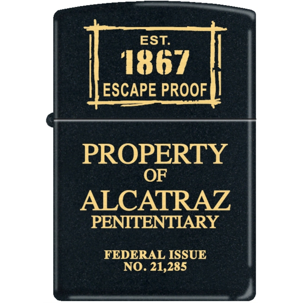 This Zippo lighter is a rare collectible, marked as a federal issue from the Alcatraz Penitentiary, making it significant for collectors and history enthusiasts.
