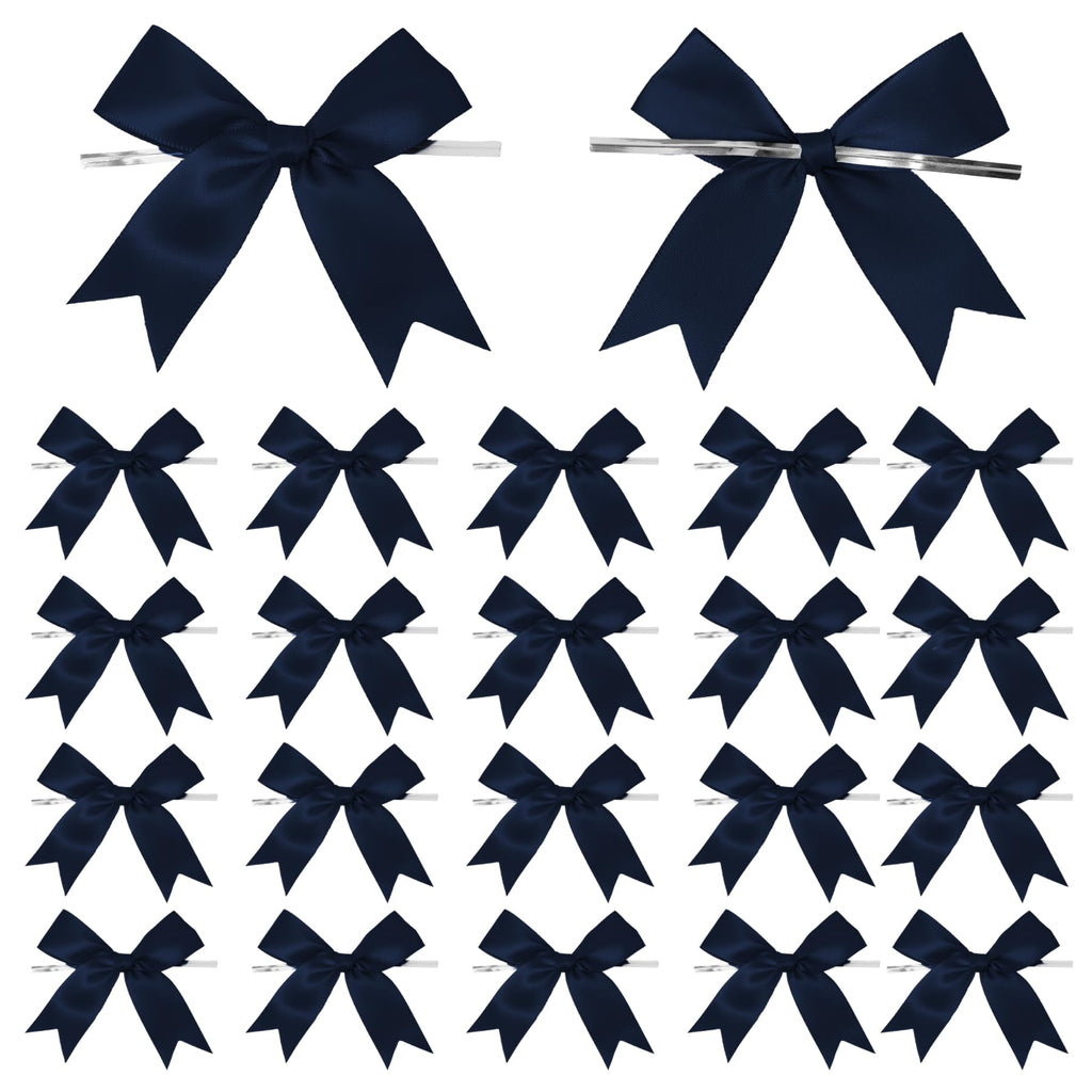 50 Counts Navy Blue Twist Tie Bows 3.1 Pre-Tied Satin Ribbon Bow Decor Mini Twist Tie Bows For Gift Wrapping Treat Bags Cake Bri
