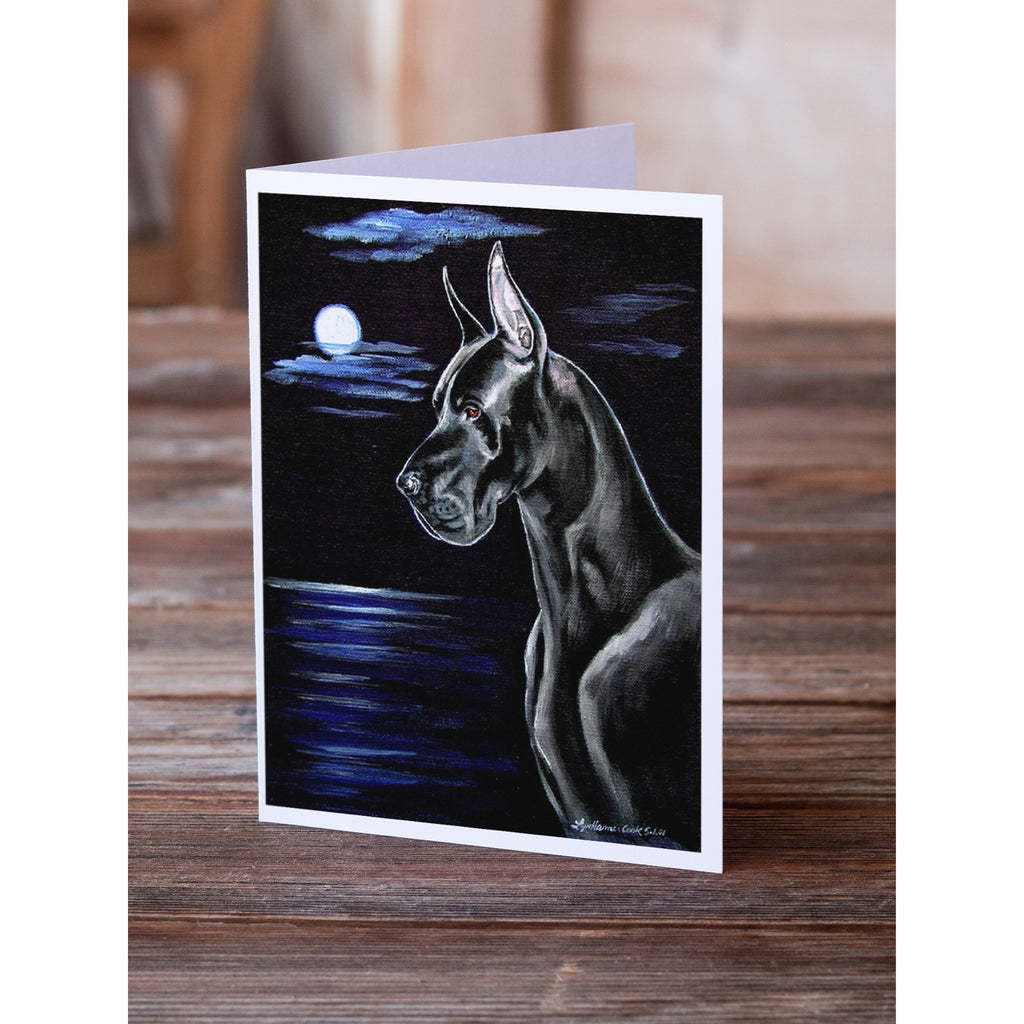 Black Great Dane In The Moonlight Greeting Cards And Envelopes Pack Of 8