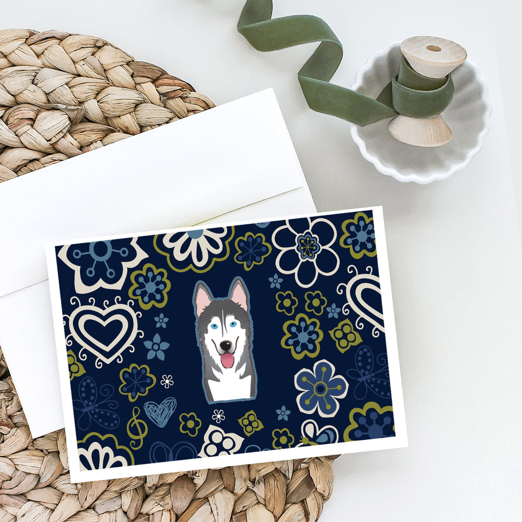 Blue Flowers Alaskan Malamute Greeting Cards And Envelopes Pack Of 8