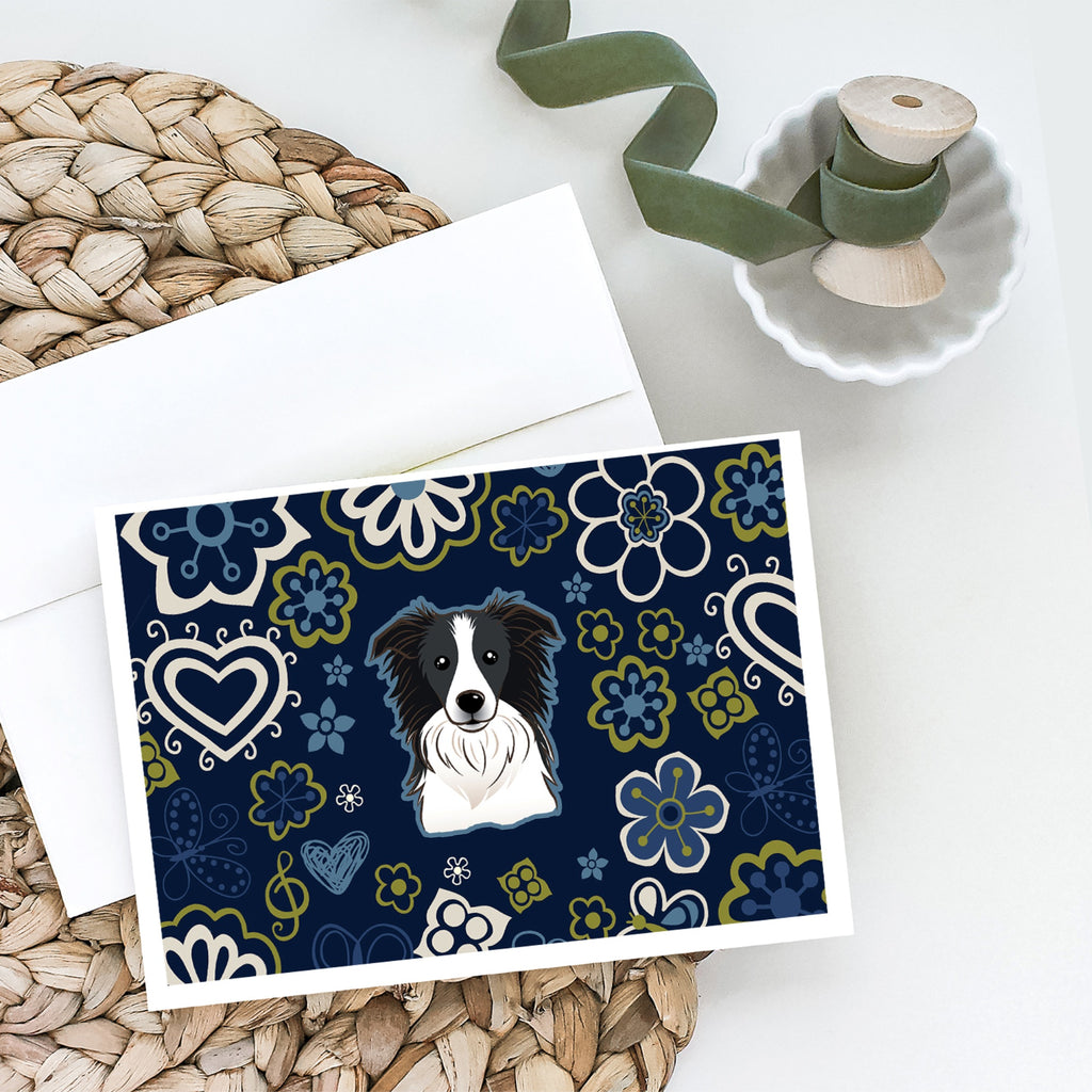Blue Flowers Border Collie Greeting Cards And Envelopes Pack Of 8