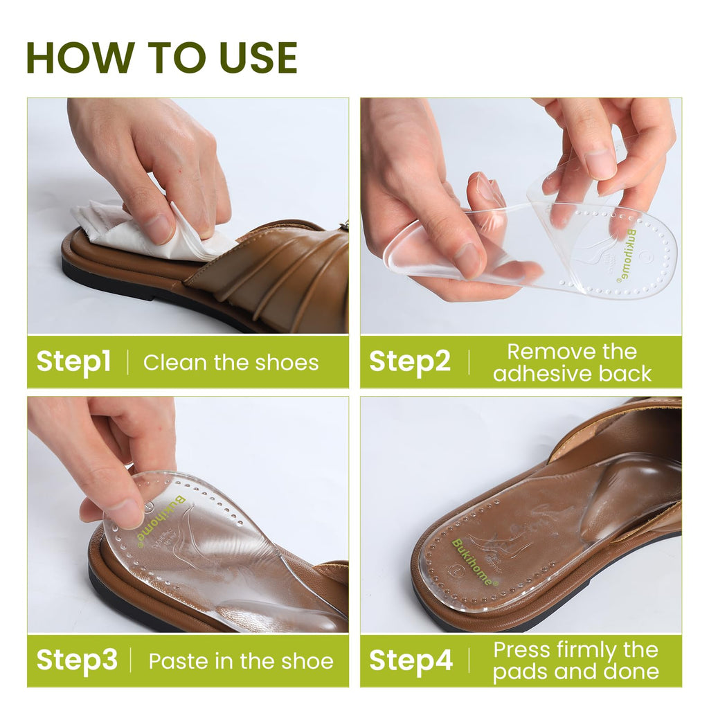 Bukihome Arch Support Shoe Insoles for Flat Feet,3 Pairs Gel Arch Inserts for Plantar Fasciitis, Adhesive Arch Pad for Relieve P