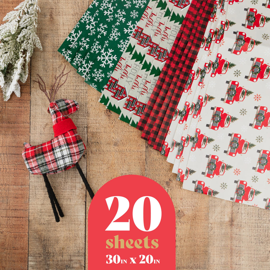 Wrap your Christmas gifts in style with our Christmas Wrapping Paper Sheets! This pack includes 20 sheets of high-quality Holiday gift wrap, perfect for adding a festive touch to your holiday gift wrapping. Each sheet features vibrant Christmas designs, adding a pop of color and excitement to your presents. Whether you're wrapping small trinkets or large presents, our holiday gift paper is versatile and easy to use. Make your gifts stand out under the tree with our Christmas Wrapping Paper Sheets!