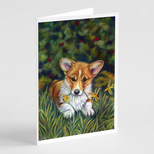 Corgi Pup And Daffodils Greeting Cards And Envelopes Pack Of 8