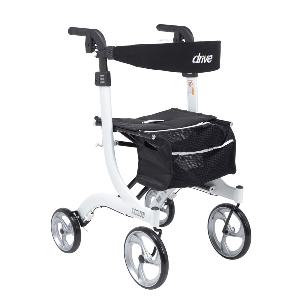 Supreme Value, Comfort And Mobility Drive Medical'S Nitro Euro Style Rollator Walker In Tall Height Was Designed For Those Who Want Unmatched Value Along With Proven Comfort And Convenience. With A Sturdy And Long-Lasting Frame Made Of Lightweight Aluminum, This Walker Is Durable, Yet Easy To Move Around Over All Surfaces, Giving You Outstanding Value, Unmatched Comfort, Independence And Ease Of Movement.Designed With Your Comfort, Safety And Convenience Squarely In Mind, The Nitro Euro Style Rollator Walker In Tall Height Comes With Large Front Wheels, Giving You The Ability And Convenience Of Moving Over Most Kinds Of Terrain, Whether Indoors Or Out, An Easy Task.The Flexible Height Adjustable Removable Back And The Height Adjustable Ergonomic Handles Conform To The Individual Needs Of Each User, Thereby Affording You The Opportunity To Customize The Walker. You'Ll Also Note How The Nitro Rollator Is Easy To Transport, Due To The Nature Of Its Frame Which Allows You To Fold It Up With One Hand.At The End Of The Day, The Nitro Euro Style Rollator In Tall Height Is Perfect Solution For Those Who Desire A Convenient Four Wheel Mobility Enhancing Walker That Operates Virtually Anywhere And Everywhere. Go Ahead...Experience The Drive Difference Now!