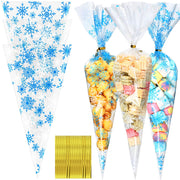 Features: Our snowflake cellophane treat bags are are printed with classic snowflake elements, full of winter breath, designed for Christmas and winter party, which will add more elegance and festive atmosphere to your wraps. Each set comes with 50 gold twist ties, making it easy to securely seal your bags and keep your goodies fresh. The twist ties are easy to use, ensuring that your treats stay protected and are easy to carry. Specifications: Material: plastic Color: white, blue Size: about 6.3 x 11.81 inches/ 16 x 30 cm Package includes: 150 x Cone shaped cellophane bags 150 x Gold twist ties Notes: Manual measurement, please allow slight errors on size. The color may exist a slight difference due to different screen displays.