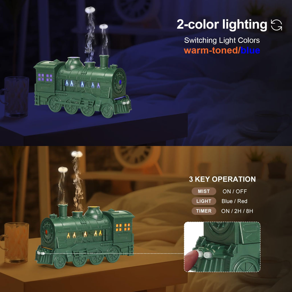 The Little Train Aromatherapy Machine is a cute and practical home aromatherapy device. Its exterior design inspiration comes from trains, with a delicate and cute shape that is suitable for placement in any corner of the home. This aromatherapy machine uses ultrasonic technology to decompose water molecules into fine mist through vibration, and then release the atomized water along with the aromatherapy oil. You only need to add an appropriate amount of water and your favorite aromatherapy oil to the machine, and you can easily enjoy the charming aroma through the operation button. The small train aromatherapy machine has multiple functional settings to meet different needs. It has a timer function, and you can set the working time as needed, such as starting 30 minutes before bedtime, allowing you to enjoy a good night's sleep; There are also continuous and intermittent work modes, allowing you to freely choose according to personal preferences. In addition, the small train aromatherapy machine also has lighting function. It has built-in LED lights that provide soft lighting effects and can be used as a night light, providing you with a touch of warmth and peace of mind. From a safety perspective, the small train aromatherapy machine has an automatic shutdown function. When the water in the tank runs out, the equipment will automatically shut down to ensure safe use. Our small train aromatherapy machine is suitable for various scenarios such as home, office, and vehicles, bringing you a pleasant aroma experience and comfortable environment.