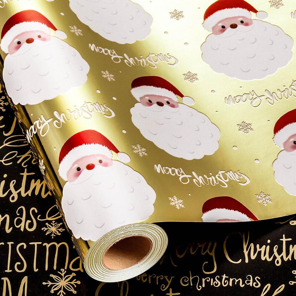 Maypluss Gold Santa Claus Wrapping Paper Roll, 17In X 33Ft Christmas Gift Wrap Paper Featuring Reversible Merry Christmas For Ho