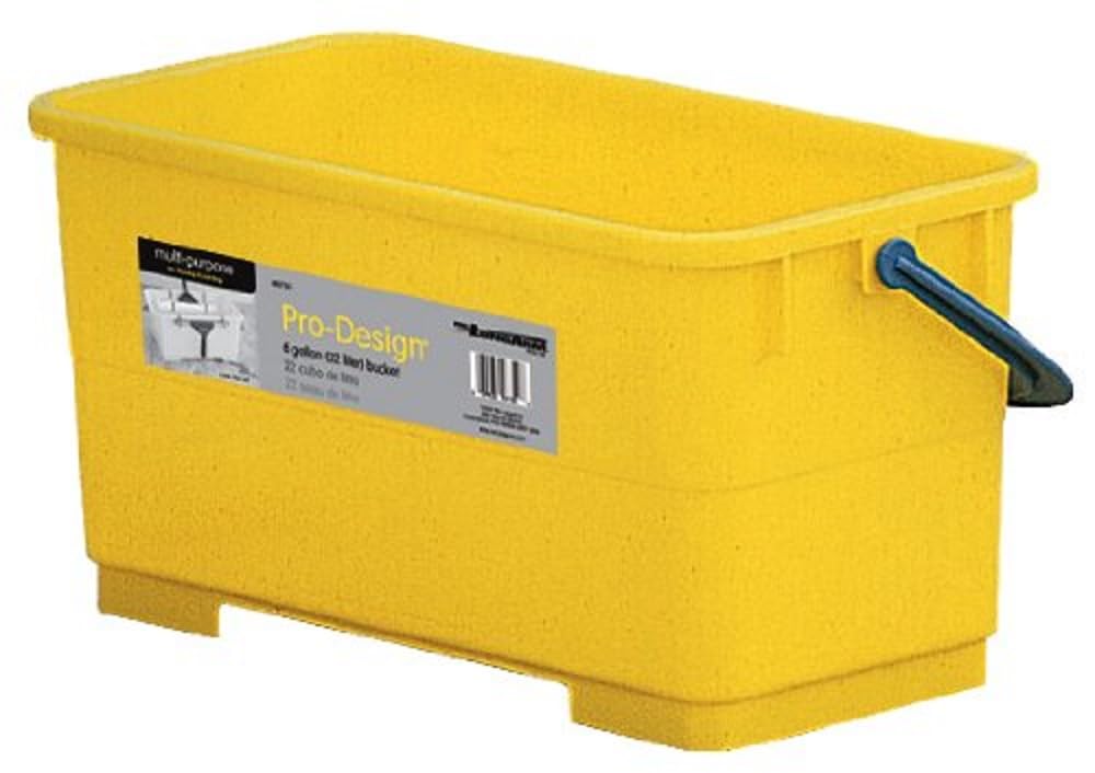 Mr. Longarm'S 8750 Pro-Design Bucket Is A Sturdy Six Gallon Yellow Bucket With A Handle And Includes Small Squeegee Clips And Large Washer Clips. Additional Accessories Are Sold Separately. The Additional Accessories Include Caster Set (4) (Part #8751) And A Bucket Lid (Part #8754). The Bucket Combo Kit (Part #8755) Includes Everything.