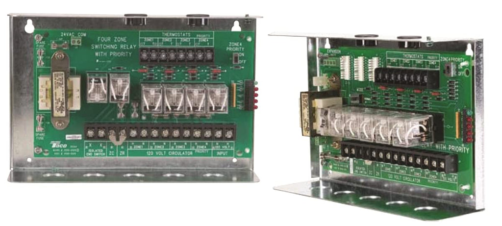 Taco Switching Relays Combine Clearly Labeled Pc Board Layouts With Advanced Features That Allow For Total System Customization. Whether Using Basic Priority Switching, Or Add-On Power Controls, The Job Is Made Easy. External Indicator Lights Provide Instant Diagnostic Feedback, Making A Snap Of Service Calls Or New Installation Start-Ups. All Switching Relays Are Ul Listed, And Are Compatible With Conventional And Programmable Thermostats. For Those Larger Jobs, The -Exp Switching Relays Can Be Expanded Up To 120 Zones (20 Zoning Panels) With Priority. Taco Switching Relays Are In One, Two, Three, Four, And Six Zones.