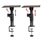 The desktop studio monitor clamp-on stand pair by Gator Frameworks supports most small-sized studio monitors in both vertical and horizontal orientations to improve speaker performance during playback and mixing. The GFWSPKSTMNDSKCMP functions by separating and elevating speakers from your desktop surface, giving you a more isolated audio response for improved accuracy during studio monitoring. Easily adjust and lock the stand height from 10. 5to 14and speaker tilt angle from 0 to 15 degrees for preferred positioning. The stand clamps to desktop surfaces up to 2. 25in thickness to free up space on your workstation table and will hold a max load of 60 lbs. In addition to studio monitors, the multipurpose top deck platform works great for MacBook Air/Pro models and will fit similar-sized laptops.