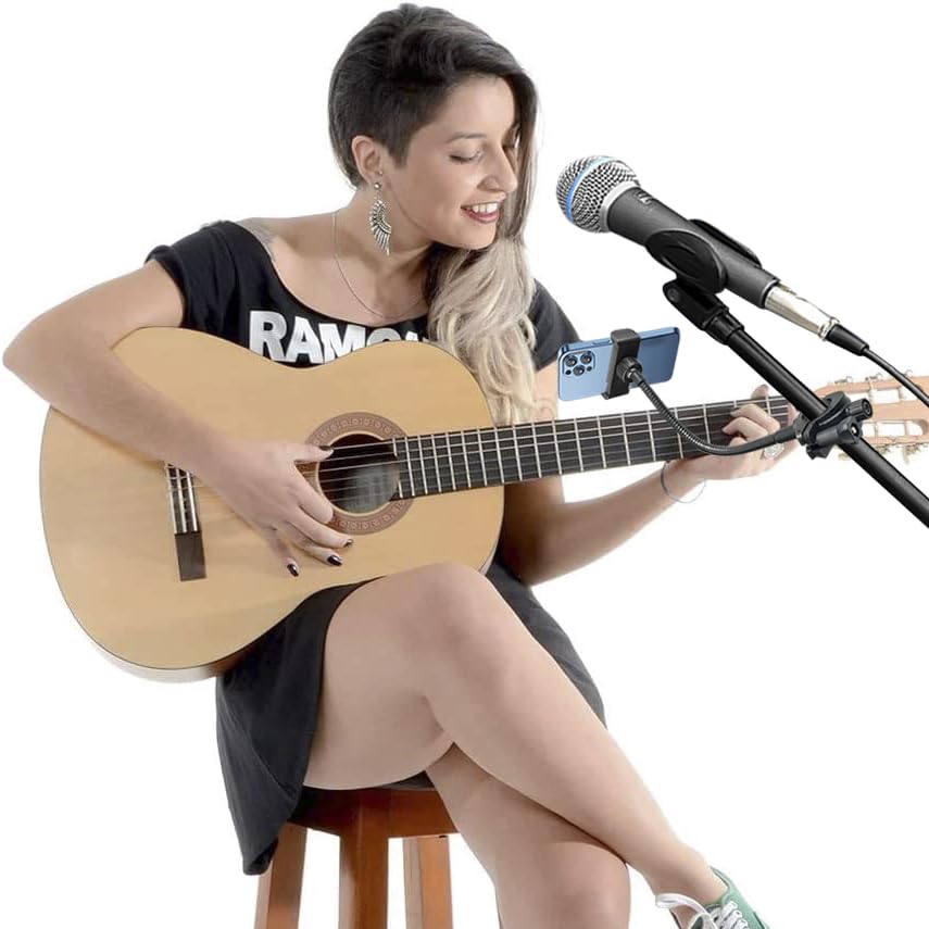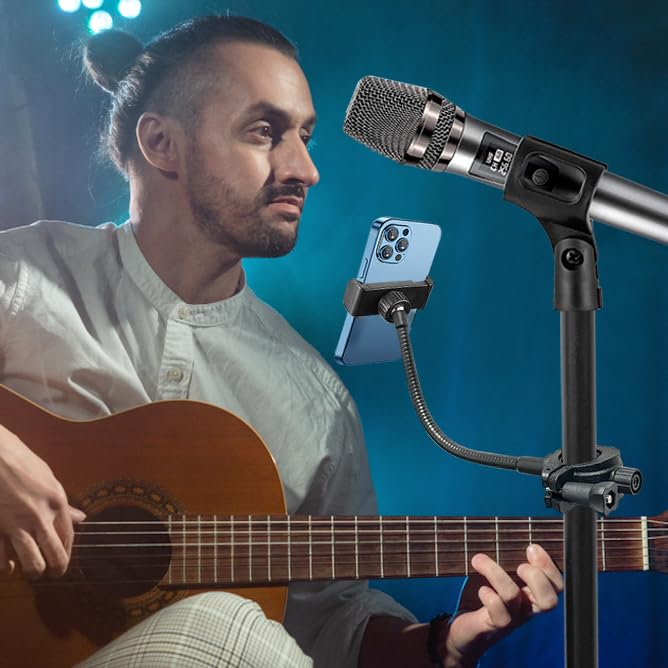 Phone Holder for Mic Stand, JCWINY Mic Stand Phone Holders [10 Long Flexible Gooseneck Arm] Cell Phone Holder for Microphone S