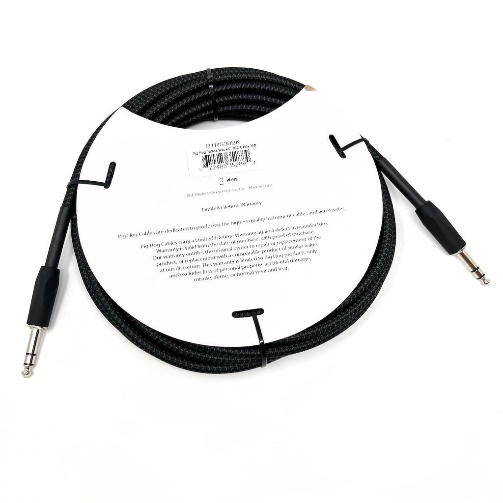 The length of the Pig Hog PTRS30BK instrument cable is thirty feet. This length is ideal for connecting instruments to amplifiers or mixers without losing sound quality.