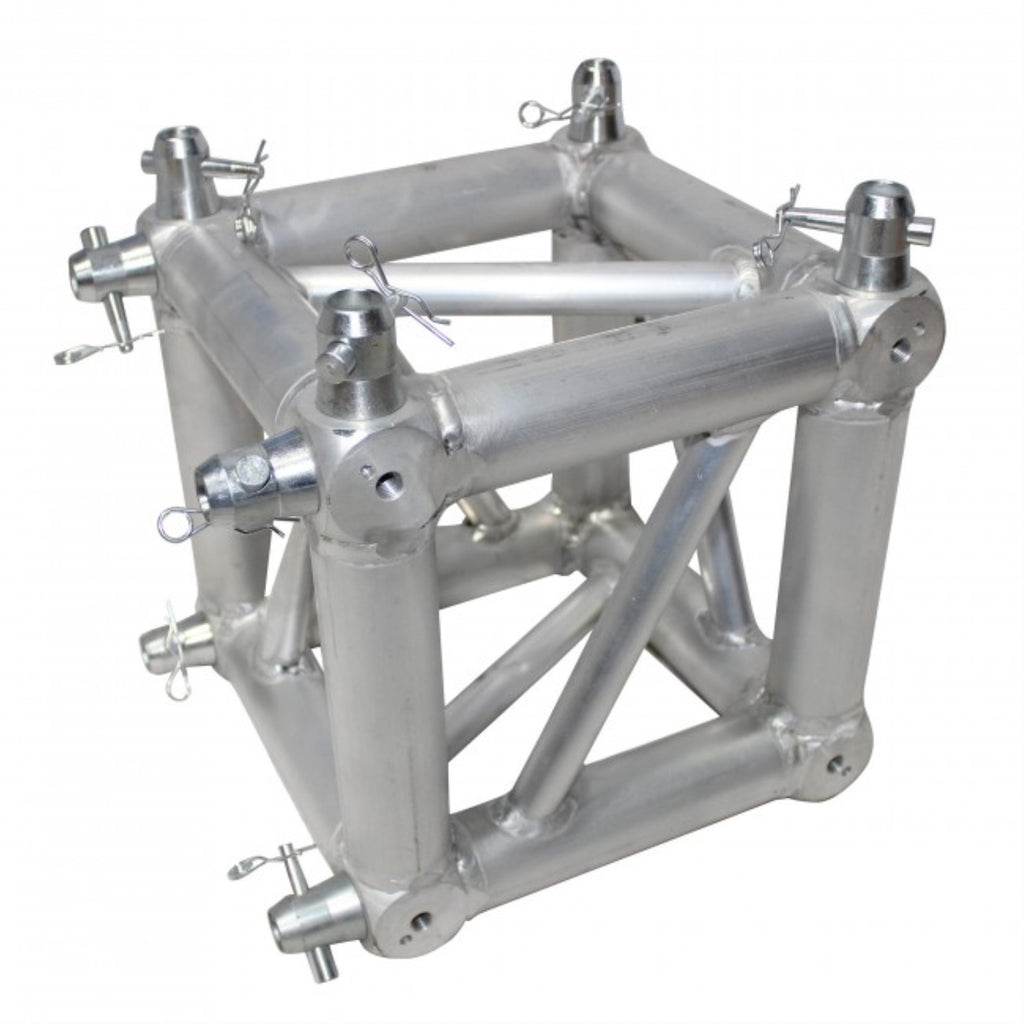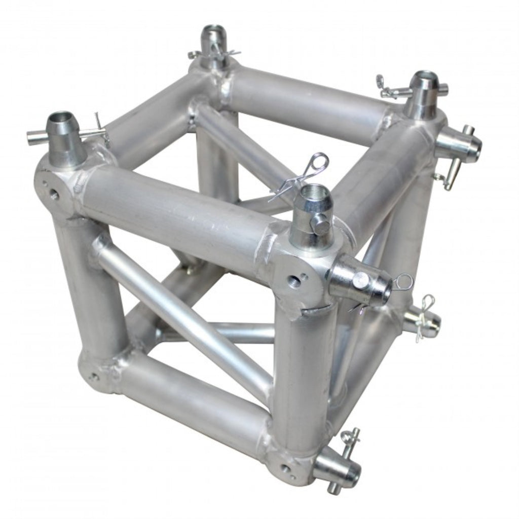 The ProX XT-JB6W-2W truss junction block measures eleven point four six inches by eleven point four six inches by eleven point four six inches. This square shape makes it suitable for various configurations.