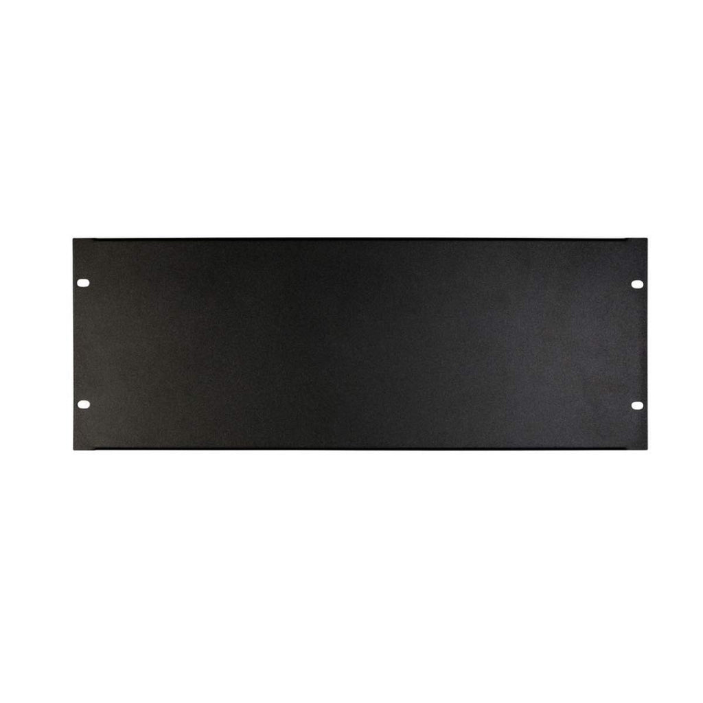 The On-Stage Blank Rack Panel measures four units in height, five point thirty-one inches in length, and one point five inches in width.